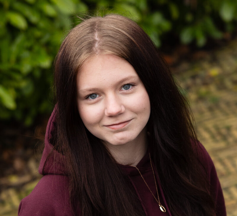 Naast school doe ik aan schermen, heb ik een bijbaantje in de horeca, lees ik veel, heb ik altijd muziek aan en ben ik veel bezig met mijn geweldige maar eigenwijze hond Ronja!